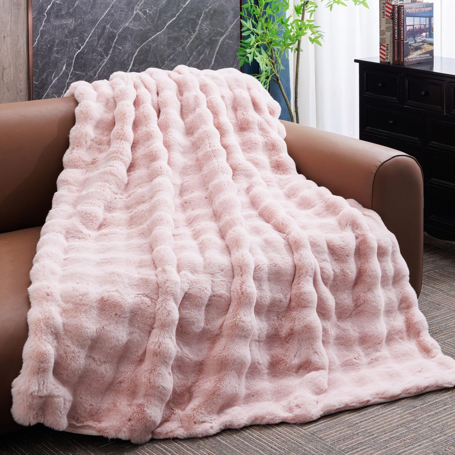 【Luxurious Thick Fur】Crafted with 900GSM heavyweight faux rabbit fur, this blanket delivers unmatched plushness. Each fiber is meticulously anchored to prevent shedding, ensuring lasting opulence that withstands daily use.